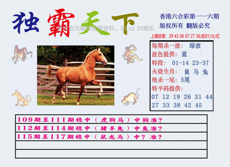 116期:家野两肖家禽+虎蛇╣开:马24准