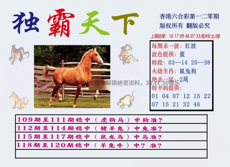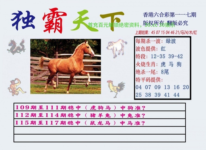 112期:家野两肖野兽+鸡马╣开:龙02准